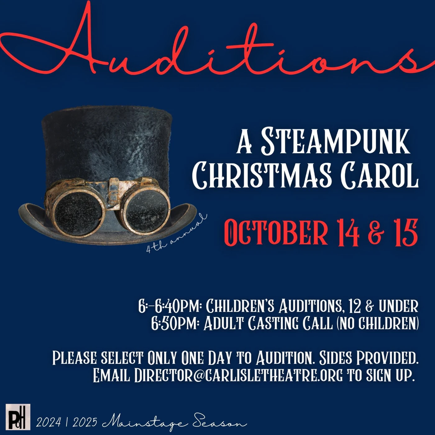 —Monologues welcome but not required. Sides will be provided. Be prepared to sing carols & participate in a movement audition.
